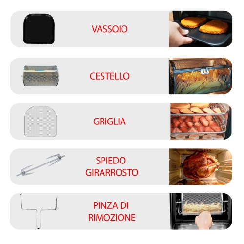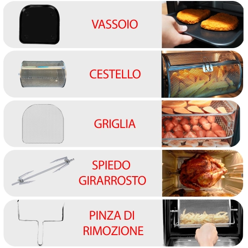 - Con cestello per girarrosto e patatine fritte
