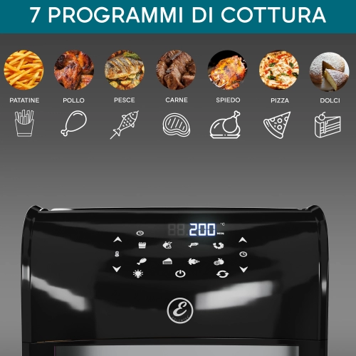 Dallo schermo digitale LCD touch screen potrete scegliere tra i 7 programmi preimpostati oppure regolare sia la temperatura da 80° a 200° che la